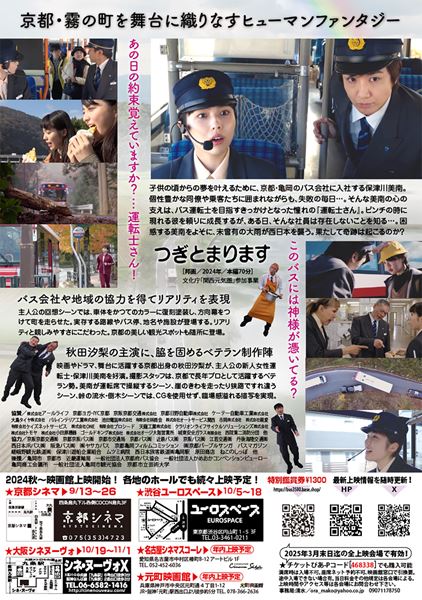 京都を舞台に、バス運転士の日常を描いたドラマ。子供の頃からの夢だったバス会社に就職した女性が、同僚や乗客たちに囲まれながら成長していく。監督は片岡れいこ。車体を復刻塗装するなどリアリティにこだわり、実在する路線やバス停、京都の観光スポットなども登場する。主演は秋田汐梨。共演は三島ゆり子、梶浦梶子、黒川英二、川合智己ら。