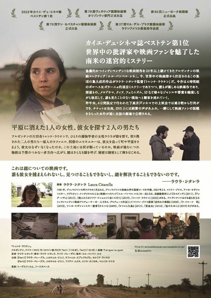 第79回ヴェネチア国際映画祭でオリゾンティ部門に選出された、260分の長編ミステリーを2部構成で上映する。アルゼンチンの片田舎を舞台に、失踪した女性学者を探して、恋人と同僚の男性がさまよう。監督はラウラ・シタレラ。出演はラウラ・パレーデス、エセキエル・ピエリ、『ル・コルビュジエの家』のラファエル・スプレゲルブルドら。