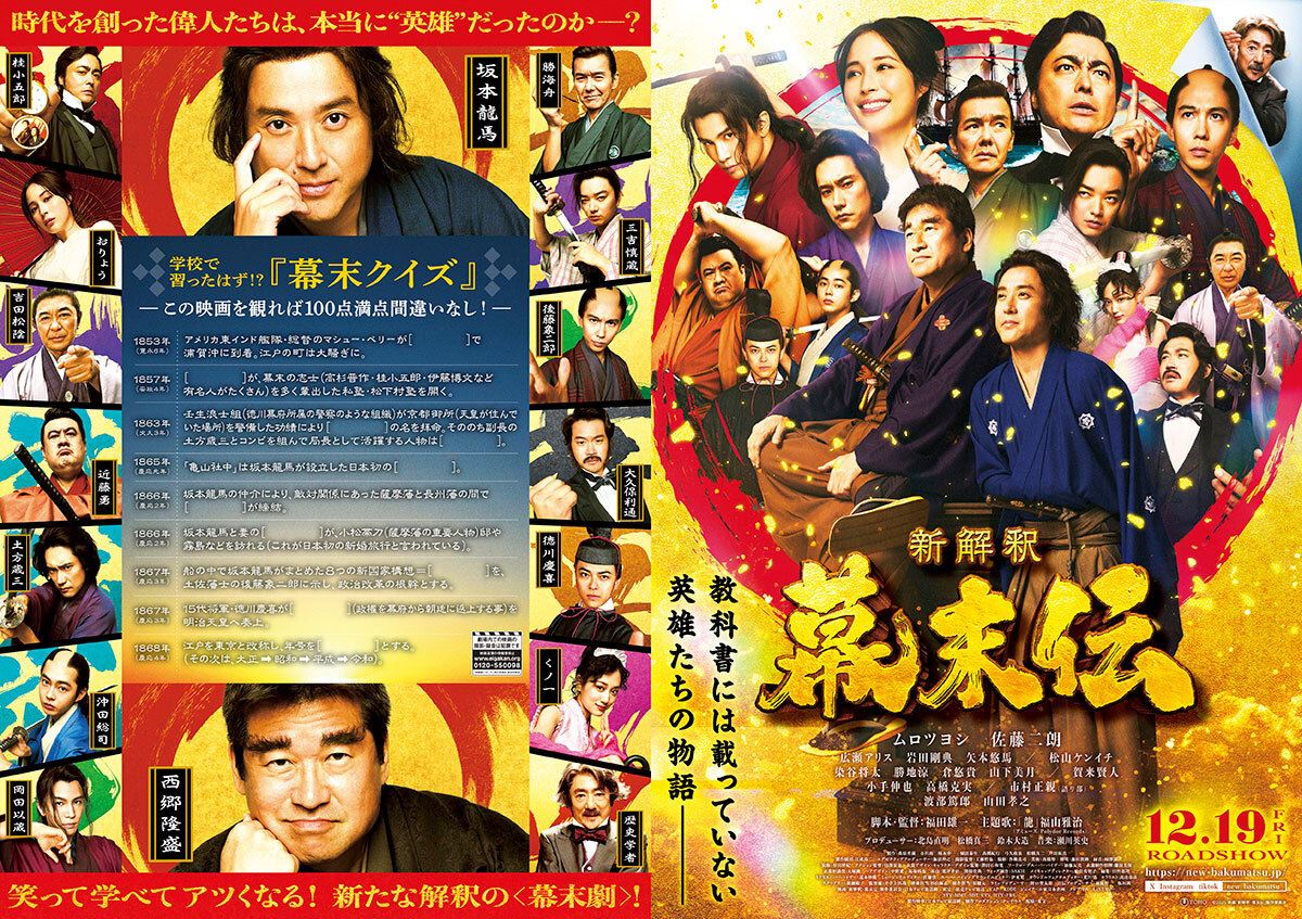 多くのコメディ映画を手がけた福田雄一監督が、日本史において大きな転換点となった幕末を、“福田流の解釈”で映画化。江戸時代末期の日本を舞台に、のちに幕末のヒーローと呼ばれる坂本龍馬と西郷隆盛の戦いと友情を描く。主演はムロツヨシ、佐藤二朗。共演は山田孝之、広瀬アリス、岩田剛典、賀来賢人、松山ケンイチ、市村正親、渡部篤郎ら。