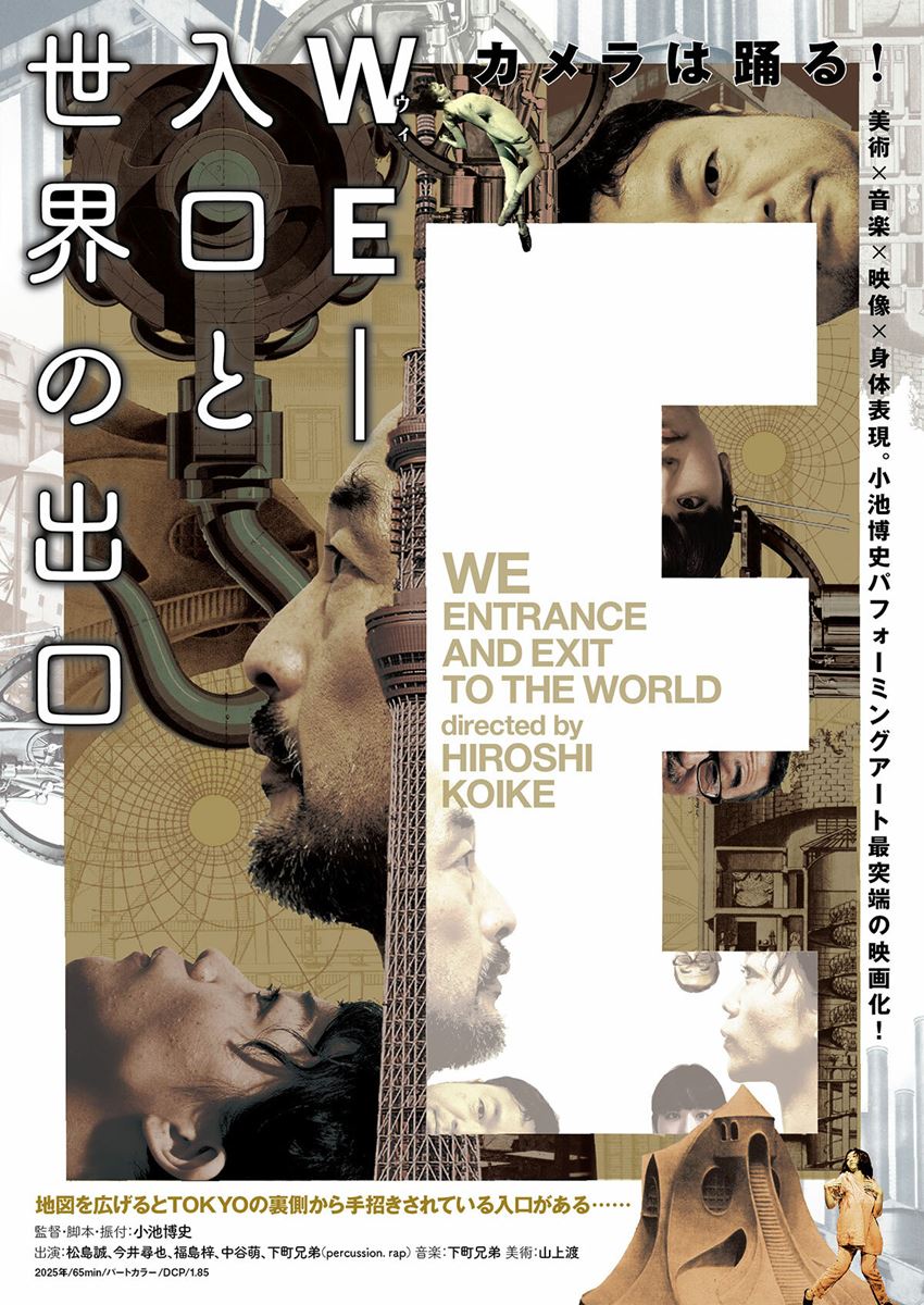 2023年に初演、2024年に再上演された小池博史監督の舞台『WE―入口と世界の出口』を映像化。階級が分かれるようになった2073年の日本を舞台に、監視社会の中で、治外法権的な場所へ逃げ込んだ人々が追いつめられていく様を、実験的な手法を駆使して描く。音楽は下町兄弟。出演は松島誠、今井尋也、福島梓、中谷萌、下町兄弟ら。