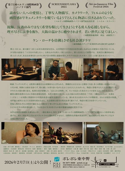 第75回ベルリン国際映画祭パノラマ部門に正式出品された、ヒューマンドラマ。元受刑者や少年院出身者の社会復帰を支援する“職親プロジェクト”に携わる人々の姿に着想を得て、元従業員による事件で誹謗中傷に悩まされながらも、社会復帰の支援を続ける夫婦を描く。監督は藤原稔三。出演は井戸大輝、サーシャ、常石梨乃、藤原稔三、藤田朋子ら。