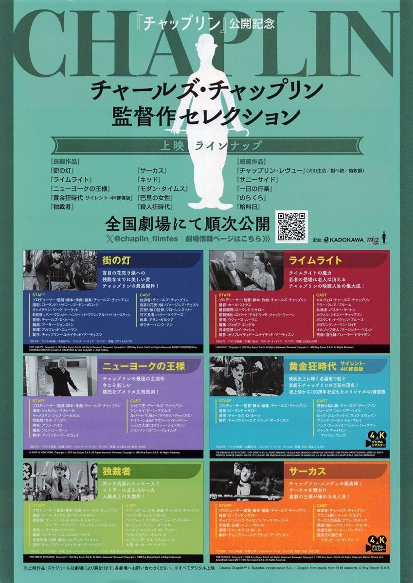 喜劇王チャールズ・チャップリンのドキュメンタリー『チャップリン』公開を記念して、チャップリンの名作を特集上映。