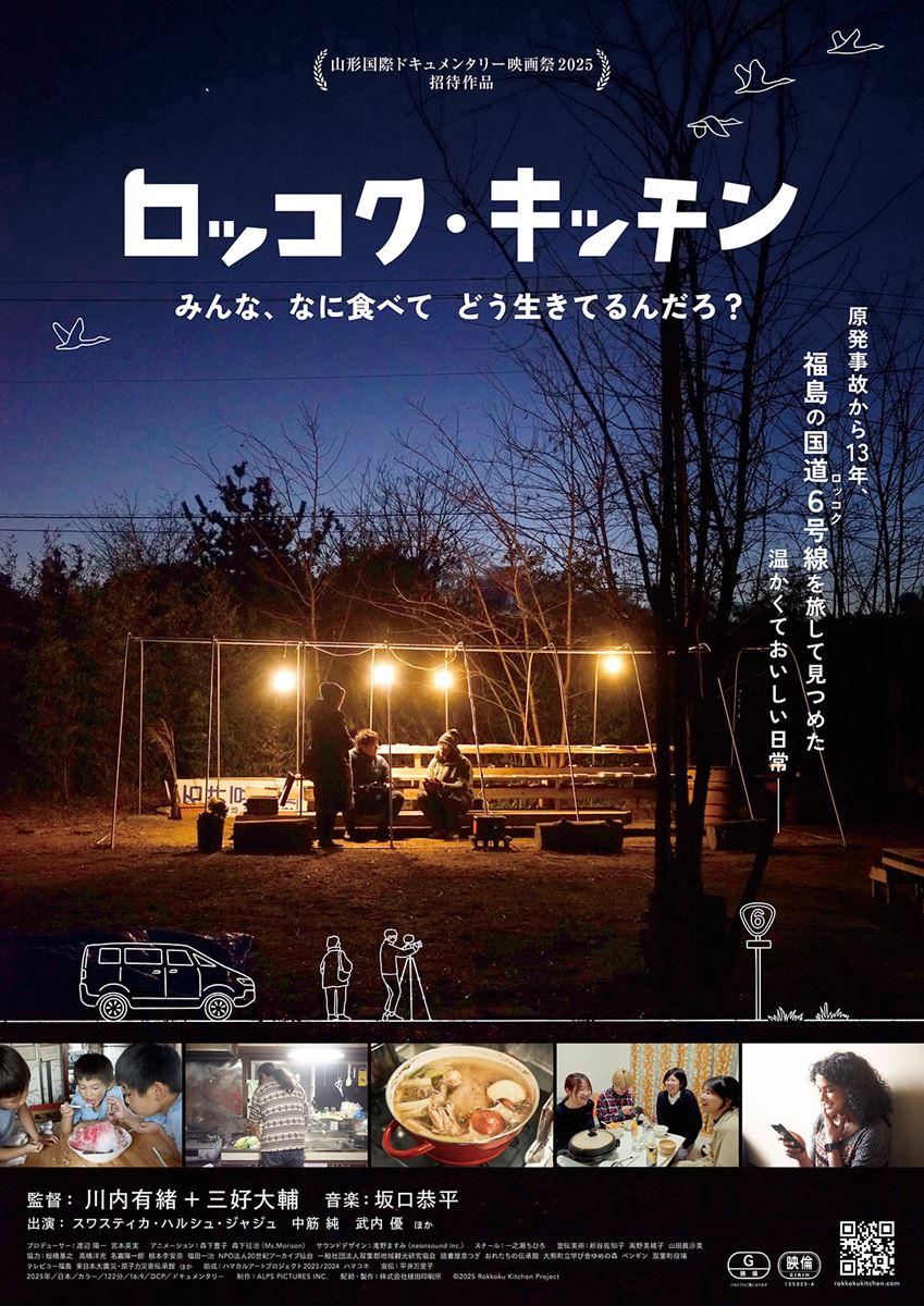 東日本大震災から13年が経った2024年、福島県を走る国道6号線=“ロッコク”沿いの町で暮らす人々の食卓を訪ねたドキュメンタリー。震災で傷を負った福島で刻まれる新たな生活史と、収集した震災前の映像を次代へ繋ぐ。監督は、ノンフィクション作家の川内有緒と、三好大輔が務める。ナレーションは武内優。プロデューサーは渡辺陽一ら。