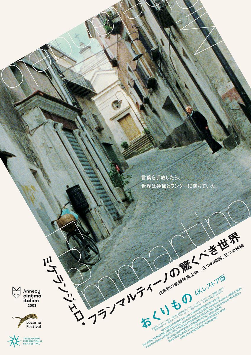 ミケランジェロ・フランマルティーノのデビュー作『おくりもの』を、4Kレストア版として日本劇場初公開する。イタリア南部、人口の流出により過疎化が進むカラブリア州の小さな村を舞台に、老いた男の最期の日々を映しだす。ダイアローグを排した映像詩のような演出が光る1作。主演を務めたのは、監督の実父アンジェロ・フランマルティーノ。