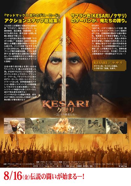 インド史に残る激闘を映像化したスペクタクル大作。1万人の軍勢に包囲された砦サラガリで絶体絶命となった21人の男たちが、決死の覚悟で戦う姿を映し出す。主演は『パッドマン 5億人の女性を救った男』のアクシャイ・クマール。『マッドマックス 怒りのデス・ロード』などに携わったローレンス・ウッドワードがアクション監督を務めた。