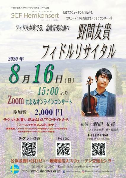 スウェーデン交流センター主催 野間友貴フィドルリサイタル
