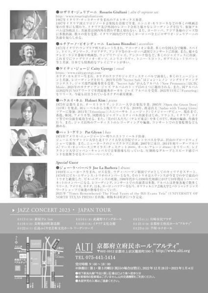[出演]Rosario Giuliani(as) / Luciano Biondini(acc) / Caity Gyorgy(vo) / Hakuei Kim(p) / Pat Glynn(b) / Joe La Barbera(ds)
