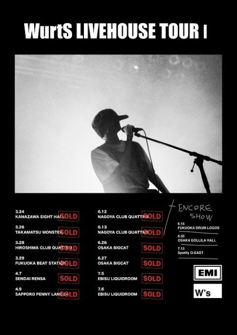 SNSで話題のソロ・アーティストWurtSが全国9ヶ所12公演巡るライヴハウス・ツアー「WurtS LIVEHOUSE TOUR I」を開催!