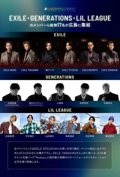 [出演]EXILE AKIRA / EXILE TAKAHIRO / 橘ケンチ / EXILE TETSUYA / EXILE NESMITH / EXILE SHOKICHI / 白濱亜嵐 / 関口メンディー / 小森隼 / 佐野玲於 / 中務裕太 / LIL LEAGUE / STU48 / TEE / HIPPY / 白A