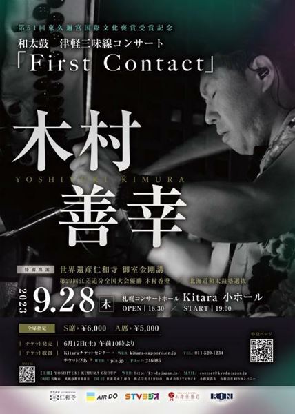 [出演]木村善幸(和太鼓・津軽三味線二刀流演奏家) [ゲスト]御室金剛講(世界遺産仁和寺) / 木村香澄(第29回江差追分全国大会優勝) [共演]北海道和太鼓塾選抜