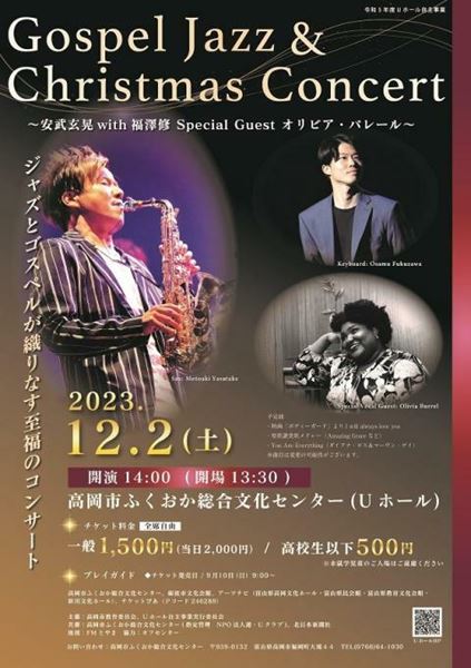 サックス安武玄晃、キーボード福澤修、ゲストにオリビア・バレールを迎えJAZZクリスマスコンサート開催