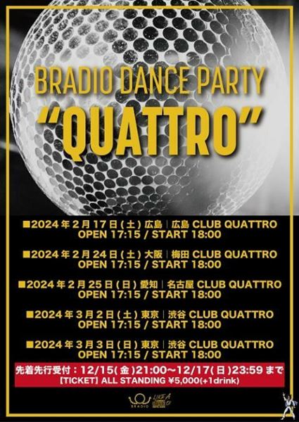 広島クラブクアトロ、梅田クラブクアトロ、名古屋クラブクアトロ、渋谷CLUB QUATTRO