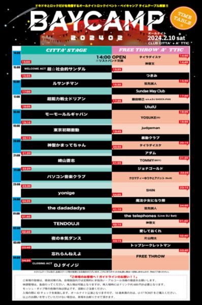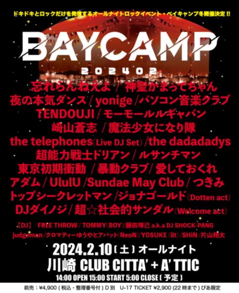 2024年冬のBAYCAMPを開催!第6弾出演アーティスト&タイムテーブル発表、忘れらんねえよや超能力戦士ドリアン、崎山蒼志らが出演!