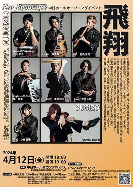 2023年2月の金沢での初共演で素晴らしいコラボレーションを繰り広げたSUGIZOをゲストに迎えて行われる。限りなく"飛翔"するネオジャパネスクの真価が最大限に発揮されるものになるだろう。