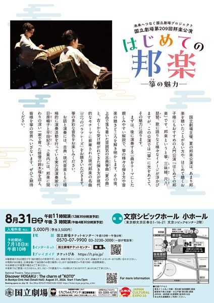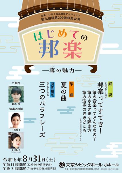 国立劇場 8月邦楽公演 はじめての邦楽-箏の魅力-