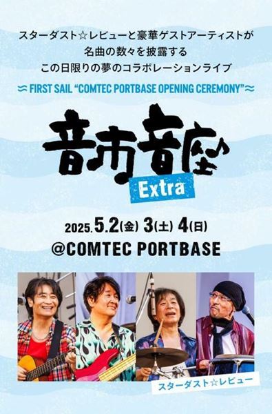 COMTEC PORTBASEのオープンを記念して、音市音座Extraの開催が決定! スターダスト☆レビューと豪華ゲストアーティストのコラボーレーションライブをお楽しみに!