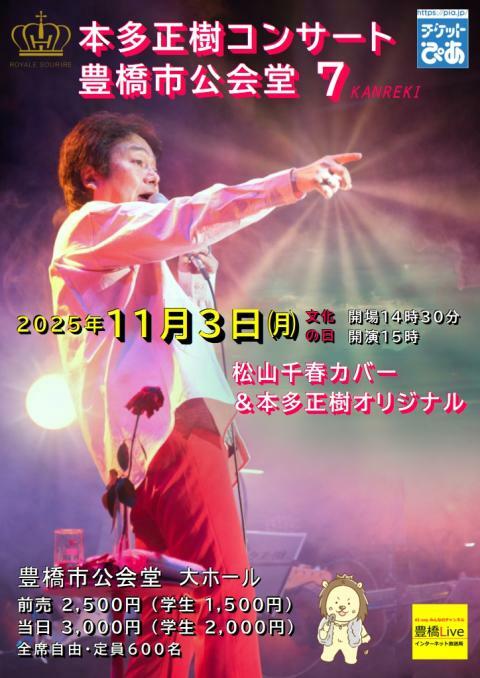 松山千春カバーと本多正樹オリジナルで構成される7回目の豊橋市公会堂大ホールにおけるワンマン公演です。