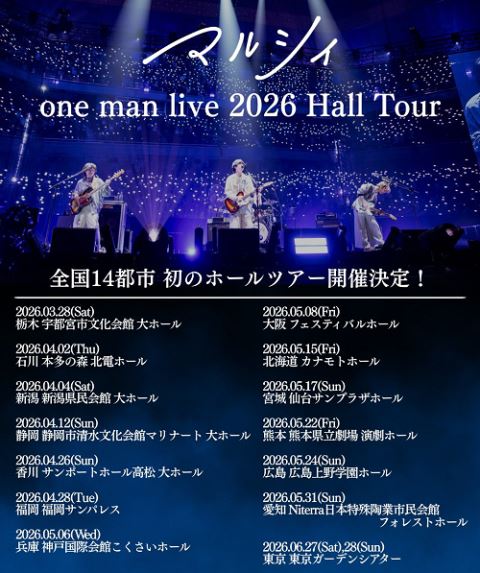 - 宇都宮市文化会館 大ホール、本多の森北電ホール、新潟県民会館 大ホール、静岡市清水文化会館マリナート 大ホール、サンポートホール高松 大ホール、福岡サンパレス、神戸国際会館こくさいホール、フェスティバルホール、カナモトホール、 仙台サンプラザホール、 熊本県立劇場 演劇ホール、広島上野学園ホール、Niterra日本特殊陶業市民会館 フォレストホール、、東京ガーデンシアター
