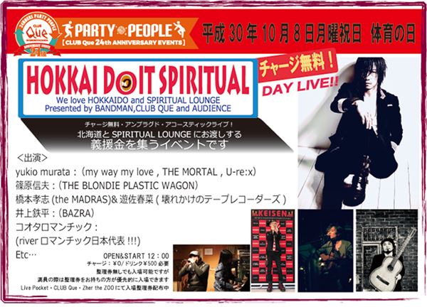 【DAY】"HOKKAI DO IT SPIRITUAL Vol.0 We love HOKKAIDO and SPIRITUAL LOUNGE Presented by BANDMAN,CLUB QUE and AUDIENCE"