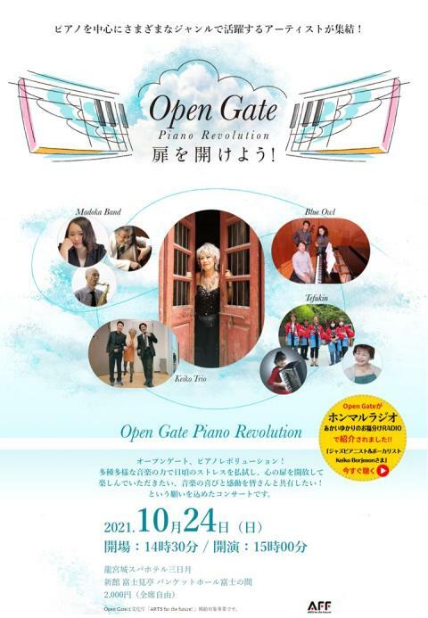 Open Gate Piano Revolution 21/10/24(日) 龍宮城スパホテル三日月 富士見亭 シェア ツイート オープンゲート、ピアノレボリューション! 心の扉を開放して、皆さんと喜びと感動を共有しましょう。 開催情報 4歳以上はチケットが必要。小学生以下は保護者同伴。マスク着用でご来館下さい。熱が37.5以上ある方の入場はご遠慮頂きます。 料金 全席自由-2,000円 表示できるチケット情報はありません詳しくはこちら キャスト&スタッフ 出演 Keiko トリオ 手風琴 Blue Owl 円香バンド [出演]Keiko トリオ / 手風琴 / Blue Owl / 円香バンド お問い合わせ 龍宮城スパホテル三日月 シェア ツイート
