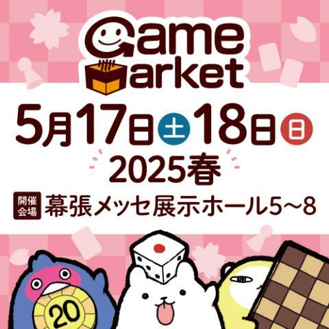 ゲームマーケット2025春 25/5/17(土)~25/5/18(日) 幕張メッセ 国際展示場 5~8ホール シェア ツイート 開催情報 時間は入場時間。小学生以下は保護者同伴に限り無料。会場内は事務局スタッフが写真撮影や動画撮影を行なっております。こちらのデータはイベントの宣伝に使用させていただきますので、あらかじめご了承ください。 料金 早期11時入場チケット-3,000円 12時入場チケット-1,500円 11時入場チケット-1,500円 12時入場チケット-高校生以下無料、当日要学生証。 11時入場チケット-高校生以下無料、当日要学生証。 表示できるチケット情報はありません詳しくはこちら キャスト&スタッフ メイン ゲームマーケット シェア ツイート