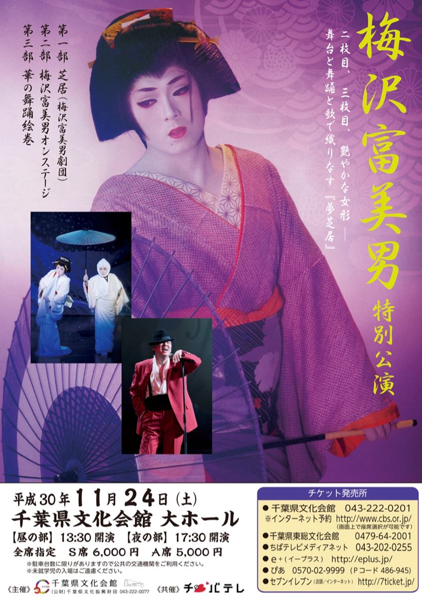 梅沢富美男 特別公演 18/11/24(土) 千葉県文化会館 大ホール シェア ツイート 料金 S席-6,000円 A席-5,000円 未就学児童は入場不可。 表示できるチケット情報はありません詳しくはこちら キャスト&スタッフ 出演 梅沢富美男 お問い合わせ 千葉県文化会館 公式サイト シェア ツイート