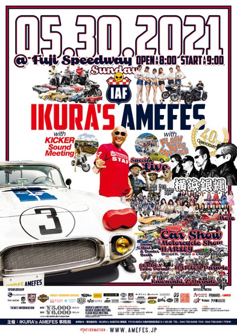 IKURA's AMEFES 2021 21/5/30(日) 富士スピードウェイ シェア ツイート 富士スピードウェイにて開催される日本最大級のアメリカンモータースポーツイベント 開催情報 ジャンル モータースポーツ *雨天決行、荒天中止*チケット購入者同伴に限り小学生まで無料。 料金 自由席-5,000円 表示できるチケット情報はありません詳しくはこちら キャスト&スタッフ 出場 T.C.R.横浜銀蝿R.S. 横山剣 IKURA&FUNKEE STYLE [出場]横浜銀蝿 / 横山剣(CKB) / IKURA&FUNKEE STYLE お問い合わせ IKURA's AMEFES事務局 シェア ツイート
