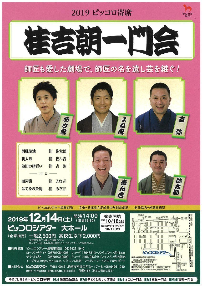 「桂吉朝一門会」2019 ピッコロ寄席 19/12/14(土) ピッコロシアター 大ホール シェア ツイート 上演情報 ジャンル 落語/演芸 【演目】 「阿弥陀池」 桂弥太郎 「桃太郎」 桂佐ん吉 「池田の猪買い」 桂吉弥 -中入- 「皿屋敷」 桂よね吉 「はてなの茶碗」 桂あさ吉 料金 【全席指定】 一般-2,500円 高校生以下-2,000円 ※未就学児童は入場不可 表示できるチケット情報はありません詳しくはこちら キャスト&スタッフ 出演 桂あさ吉 桂よね吉 桂吉弥 桂佐ん吉 桂弥太郎 お問い合わせ ピッコロシアター 公式サイト シェア ツイート