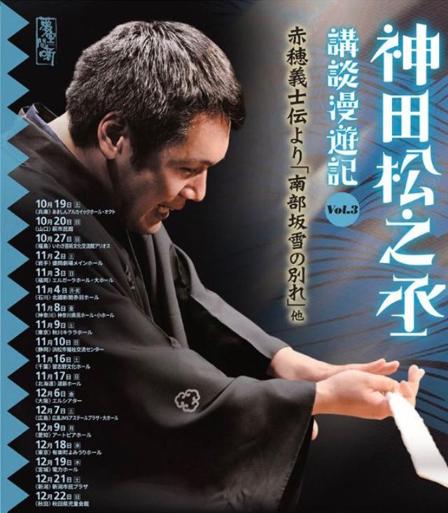 神田松之丞「講談漫遊記vol.3」 19/10/19(土) あましんアルカイックホール・オクト シェア ツイート 上演情報 ジャンル 落語/演芸 【演目】 赤穂義士伝より「南部坂雪の別れ」ほか 料金 【全席指定】3,400円 ※未就学児童は入場不可。 表示できるチケット情報はありません詳しくはこちら キャスト&スタッフ 出演 神田松之丞 お問い合わせ あましんアルカイックホール(尼崎市総合文化センター) ページ・ワン シェア ツイート