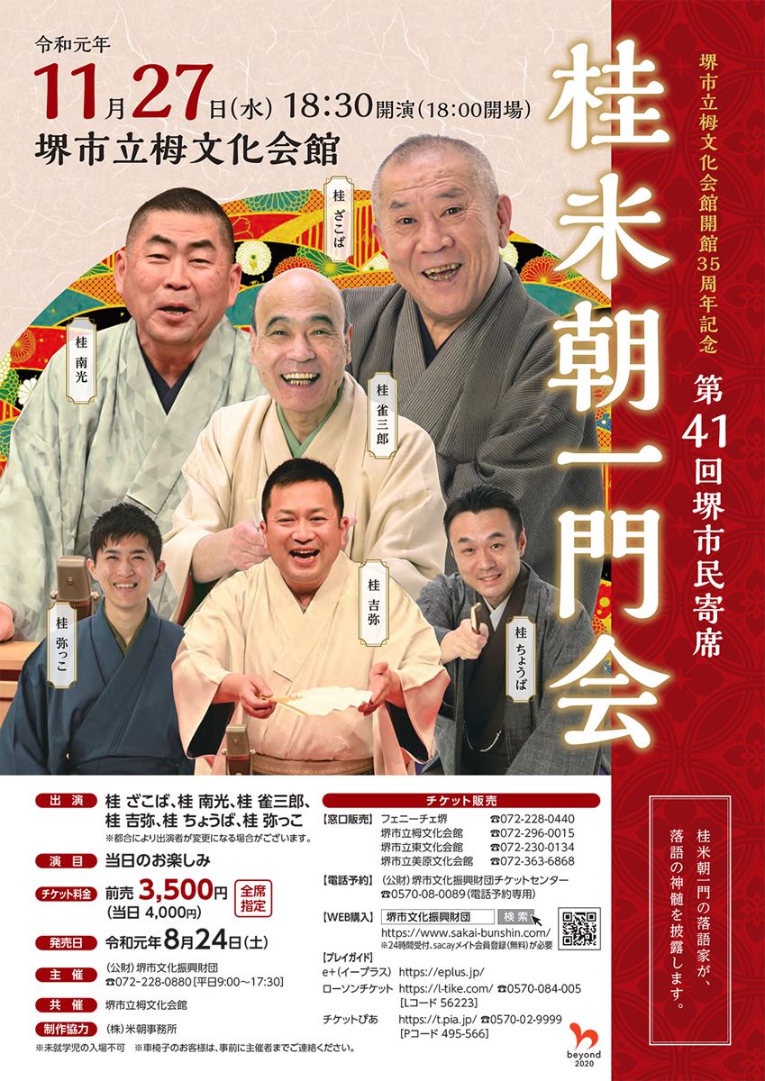 ざこば・南光・雀三郎 第41回堺市民寄席「桂米朝一門会」 19/11/27(水) 堺市立栂文化会館 シェア ツイート 上演情報 ジャンル 落語/演芸 料金 【全席指定】 前売-3,500円 当日-4,000円 ※未就学児の入場不可。※車椅子のお客様は、事前にお問合せ先までご連絡ください。 表示できるチケット情報はありません詳しくはこちら キャスト&スタッフ 出演 桂ざこば 桂南光 桂雀三郎 お問い合わせ 堺市文化振興財団 シェア ツイート