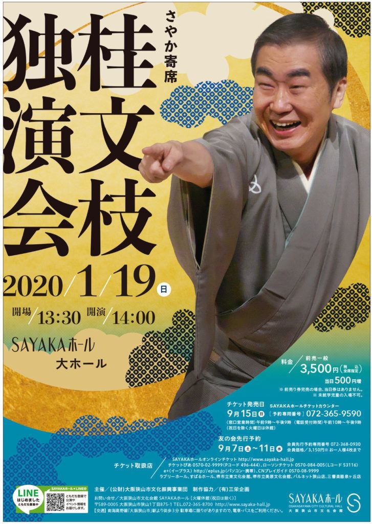 さやか寄席 桂文枝独演会 20/1/19(日) SAYAKAホール(大阪狭山市文化会館) 大ホール シェア ツイート 上演情報 ジャンル 落語/演芸 料金 【全席指定】 前売-3,500円 当日-4,000円 ※未就学児童は入場不可。 表示できるチケット情報はありません詳しくはこちら キャスト&スタッフ 出演 桂文枝 お問い合わせ SAYAKAホール シェア ツイート