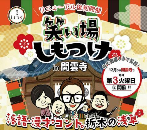 第二十一回 笑い場しもつけ 19/9/17(火) 開雲寺 シェア ツイート 【毎月第三火曜日開催中!】「 笑い場しもつけ」お寺で演芸が楽しめる寄席です。 上演情報 ジャンル 落語/演芸 小人対象年齢は0歳~18歳まで(高校生まで) 料金 自由席 大人-1,000円 自由席小人-500円 表示できるチケット情報はありません詳しくはこちら キャスト&スタッフ 出演 ワンクッション 永井塁 立川志獅丸 [出演]永井塁 / ワンクッション / 立川志獅丸 お問い合わせ ならでは株式会社エンタメ担当大橋 シェア ツイート