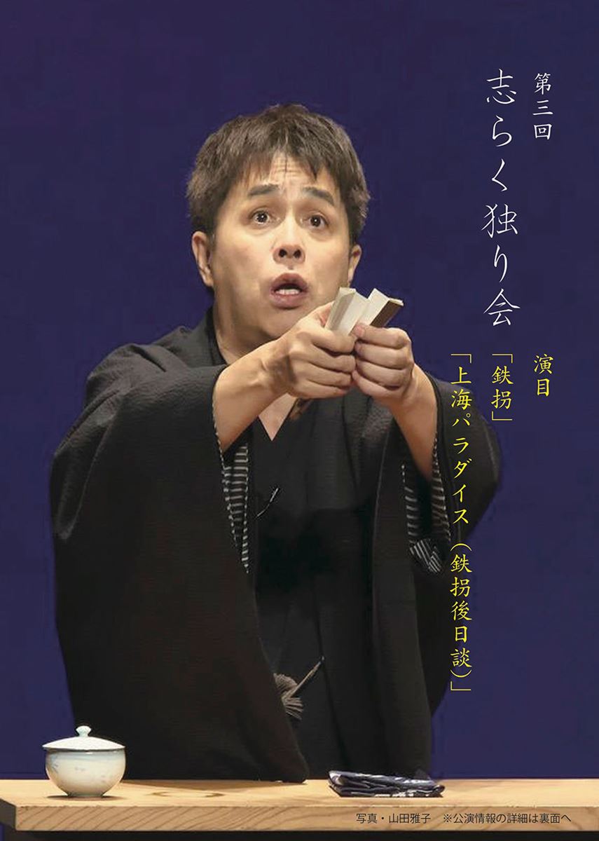 第三回 志らく独り会 19/11/14(木)~19/11/16(土) 六本木トリコロールシアター シェア ツイート 上演情報 ジャンル 落語/演芸 【演目】 「鉄拐」「上海パラダイス」(「鉄拐」後日談) 料金 【全席指定】 前売-4,000円 当日-4,500円 ※未就学児童は入場不可。 表示できるチケット情報はありません詳しくはこちら キャスト&スタッフ 出演 立川志らく お問い合わせ ダニーローズ シェア ツイート