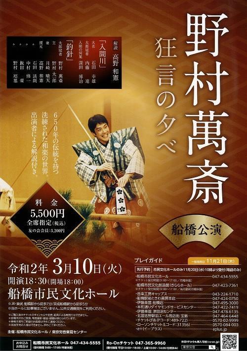 野村萬斎 狂言の夕べ 船橋公演 20/3/10(火) 船橋市民文化ホール シェア ツイート 演目『入間川』『釣針』 上演情報 ジャンル 能/狂言 料金 一般-5,500円 全席指定未就学児は入場不可車いすの方は購入前に船橋市民文化ホールまで要連絡 表示できるチケット情報はありません詳しくはこちら キャスト&スタッフ 出演 野村萬斎 [出演]野村萬斎 / 他 お問い合わせ 船橋市民文化ホール Ro-On チケット 公式サイト シェア ツイート