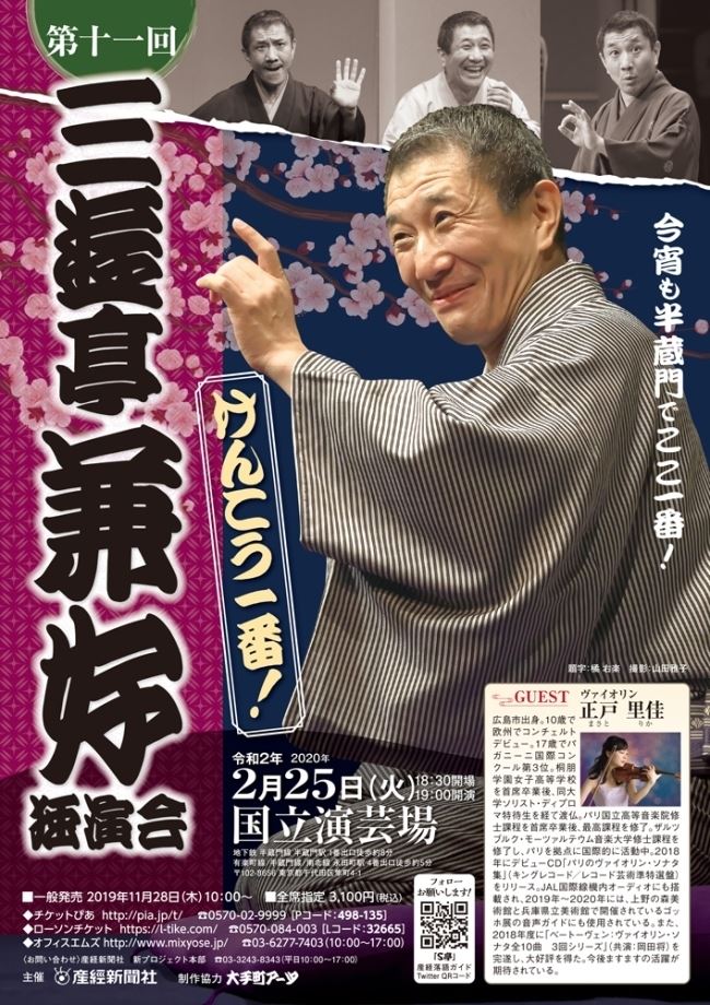 三遊亭兼好独演会 第11回 けんこう一番! 20/2/25(火) 国立演芸場 シェア ツイート 上演情報 ジャンル 落語/演芸 料金 3,100円 全席指定※未就学児童は入場不可。 表示できるチケット情報はありません詳しくはこちら キャスト&スタッフ 出演 三遊亭兼好 お問い合わせ 産経新聞社 新プロジェクト本部 シェア ツイート