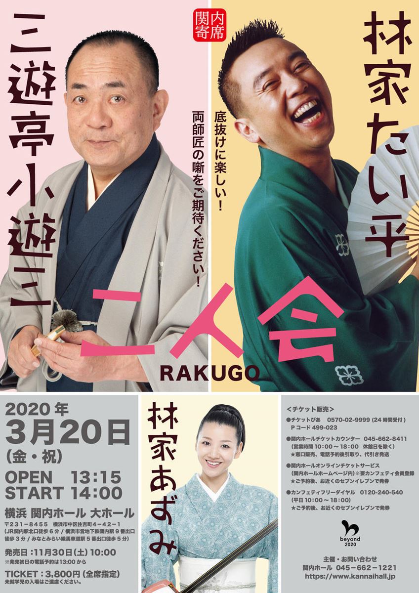 【公演中止】小遊三・たい平二人会 関内寄席 20/7/16(木) 関内ホール 大ホール シェア ツイート 上演情報 ジャンル 落語/演芸 料金 3,800円 全席指定※未就学児の入場不可。 表示できるチケット情報はありません詳しくはこちら キャスト&スタッフ 出演 三遊亭小遊三 林家たい平 お問い合わせ 関内ホール シェア ツイート