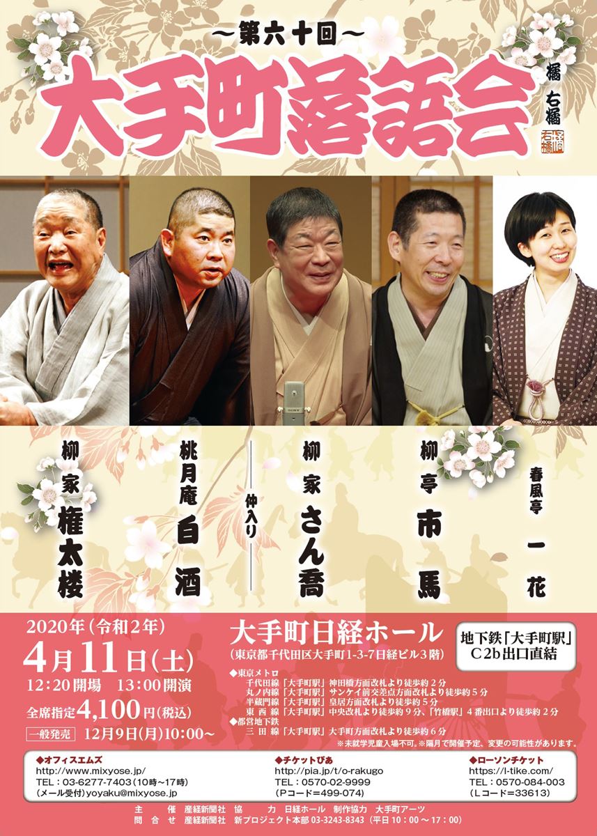 【公演中止】権太楼・さん喬・市馬・白酒 第60回 大手町落語会 20/4/11(土) 日経ホール シェア ツイート 上演情報 ジャンル 落語/演芸 料金 4,100円 全席指定※未就学児童は入場不可。 表示できるチケット情報はありません詳しくはこちら キャスト&スタッフ 出演 柳家権太楼 柳家さん喬 柳亭市馬 桃月庵白酒 春風亭一花 お問い合わせ 産経新聞社 新プロジェクト本部 シェア ツイート