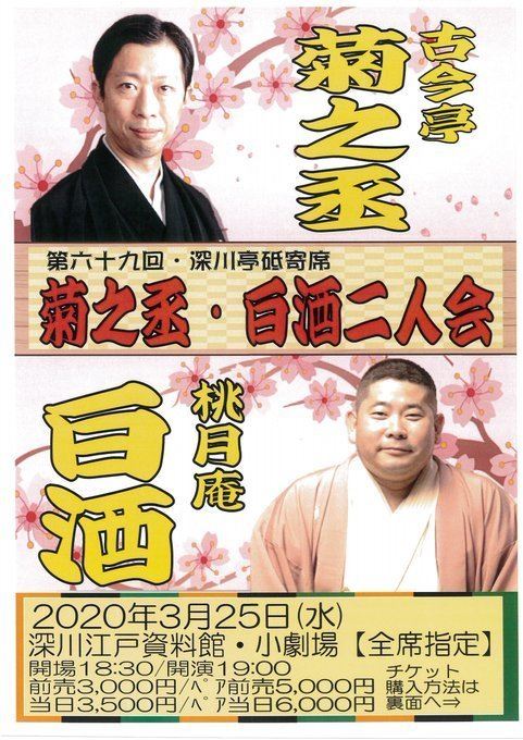 菊之丞・白酒二人会 第69回・深川亭砥寄席 20/3/25(水) 深川江戸資料館 小劇場 シェア ツイート 上演情報 ジャンル 落語/演芸 料金 一般-3,000円ペア-5,000円 全席指定 表示できるチケット情報はありません詳しくはこちら キャスト&スタッフ 出演 古今亭菊之丞 桃月庵白酒 お問い合わせ ミュージック・テイト西新宿店 シェア ツイート