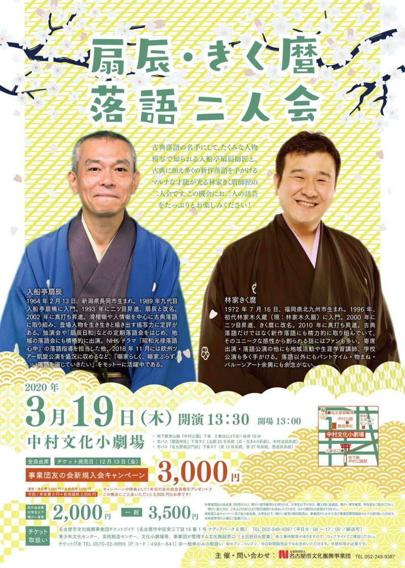 【公演中止】扇辰・きく麿 落語二人会 20/3/19(木) 名古屋市中村文化小劇場 シェア ツイート 上演情報 ジャンル 落語/演芸 料金 一般-3,500円大学生-2,000円 全席自由※未就学児の入場不可。 表示できるチケット情報はありません詳しくはこちら キャスト&スタッフ 出演 入船亭扇辰 林家きく麿 お問い合わせ 名古屋市文化振興事業団チケットガイド シェア ツイート