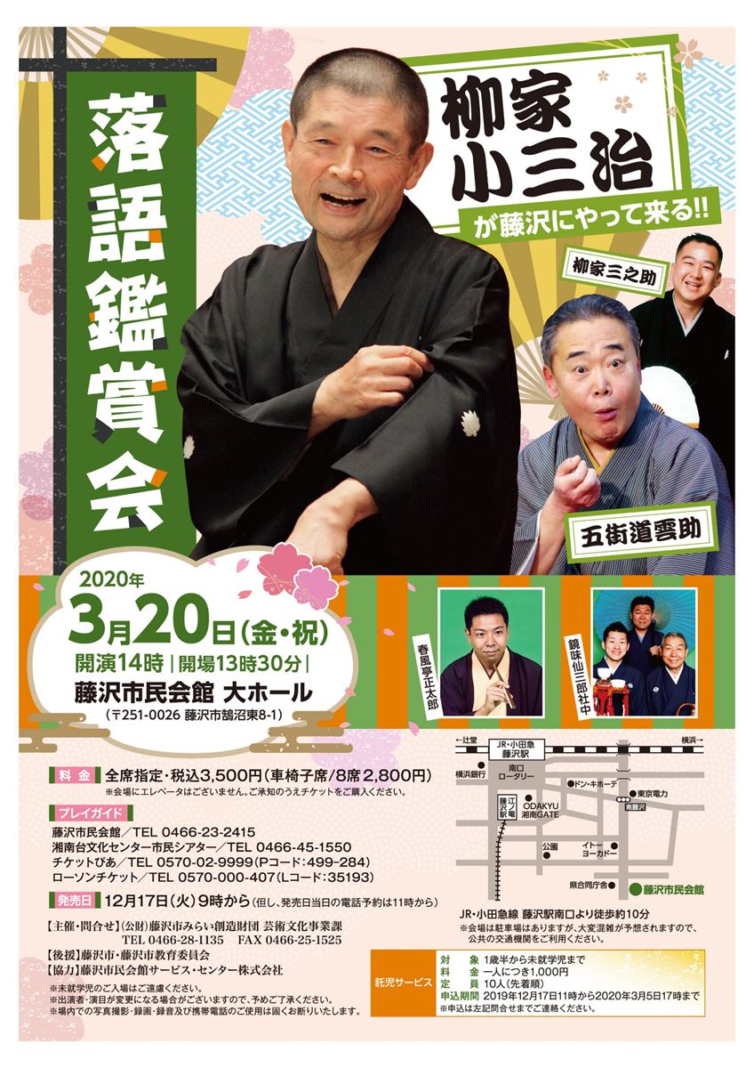 【公演中止】小三治・雲助 落語鑑賞会 20/3/20(金) 藤沢市民会館 大ホール シェア ツイート 上演情報 ジャンル 落語/演芸 料金 3,500円 全席指定※未就学児の入場不可。※車椅子での来場は問合せ先まで要連絡。 表示できるチケット情報はありません詳しくはこちら キャスト&スタッフ 出演 柳家小三治 五街道雲助 お問い合わせ 藤沢市みらい創造財団 芸術文化事業課 シェア ツイート