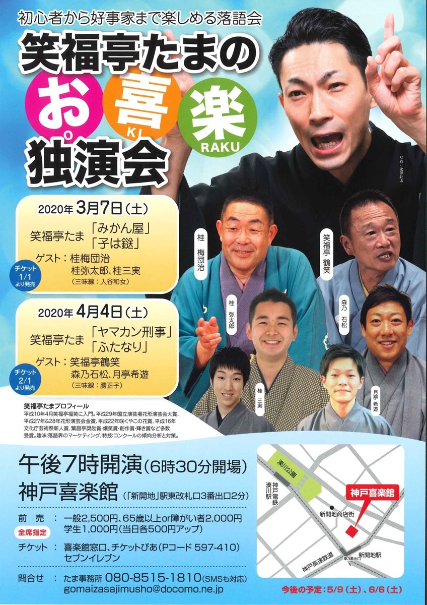 笑福亭たまのお喜楽 独演会 20/4/4(土) 神戸新開地・喜楽館 シェア ツイート 上演情報 ジャンル 落語/演芸 笑福亭たま 「ヤマカン刑事」「ふたなり」ゲスト:笑福亭鶴笑 森乃石松 月亭希遊 料金 一般-2,500円65歳以上・障がい者-2,000円(要証明書)学生-1,000円(要証明書) 全席指定※未就学児の入場不可※出演者情報等詳細は神戸新開地・喜楽館公式ホームページ(https://kobe-kirakukan.jp/)にて※車椅子席を利用はチケット(「昼席(火曜祭りは除く)は「障がい者・大・高生」)を購入の上、神戸新開地・喜楽館までお問い合わせ・お申込み 表示できるチケット情報はありません詳しくはこちら キャスト&スタッフ 出演 笑福亭たま ゲスト 笑福亭鶴笑 森乃石松 月亭希遊 お問い合わせ 神戸新開地・喜楽館 シェア ツイート