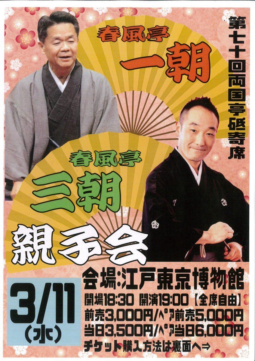 一朝・三朝親子会 第70回両国亭砥寄席 20/3/11(水) 江戸東京博物館 小ホール シェア ツイート 上演情報 ジャンル 落語/演芸 料金 一般-3,000円ペア-5,000円 全席自由 表示できるチケット情報はありません詳しくはこちら キャスト&スタッフ 出演 春風亭一朝 春風亭三朝 お問い合わせ ミュージック・テイト西新宿店 シェア ツイート