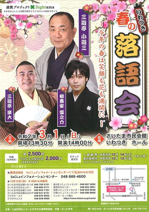 【公演中止】小遊三 いわつき春の落語会 20/3/1(日) さいたま市民会館いわつき シェア ツイート 上演情報 ジャンル 落語/演芸 料金 2,500円 全席指定※未就学児の入場不可。 キャスト&スタッフ 出演 三遊亭小遊三 三遊亭楽大 柳貴家雪之介 お問い合わせ さいたま市民会館いわつき シェア ツイート