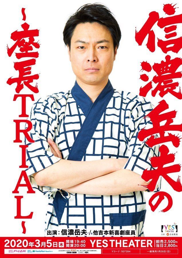 【公演中止】信濃岳夫の~座長TRIAL~ 20/3/5(木) YES THEATER シェア ツイート 上演情報 ジャンル お笑い 料金 前売-2,500円当日-2,800円 全席指定5歳以上有料、4歳以下はひざ上のみ無料、席が必要な場合は有料車いすの方はチケット購入前に問い合わせ先まで要問合せ キャスト&スタッフ 出演 信濃岳夫 メイン 吉本新喜劇 [出演]信濃岳夫 / 他吉本新喜劇座員 お問い合わせ チケットよしもと予約問合せダイヤル 10:00~19:00 公式サイト シェア ツイート