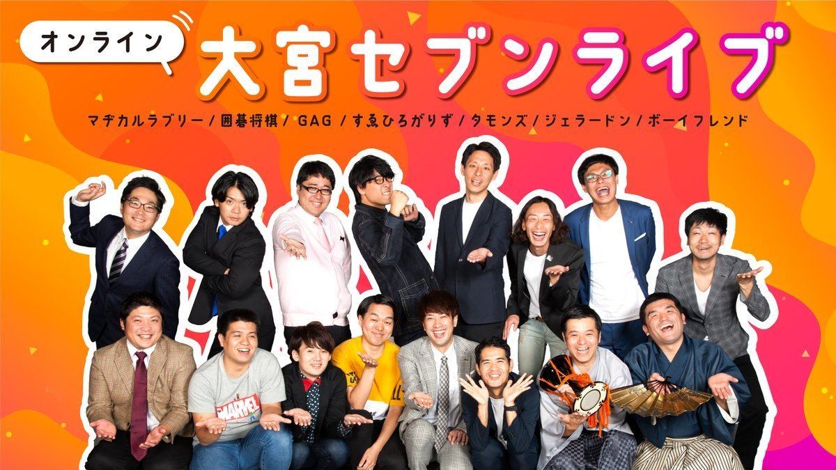 【動画配信】オンライン大宮セブンライブ! 20/7/7(火)~20/7/8(水) その他生配信 シェア ツイート 有料無観客配信という形で大宮セブンライブが復活します! 上演情報 ジャンル お笑い 20:00終演予定 料金 一般-1,300円 キャスト&スタッフ 出演 マヂカルラブリー 囲碁将棋 GAG すゑひろがりず ジェラードン タモンズ ボーイフレンド [出演]マヂカルラブリー(野田のみ動画出演) / 囲碁将棋 / GAG / すゑひろがりず / ジェラードン / タモンズ / ボーイフレンド 公式サイト シェア ツイート