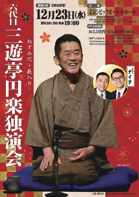 三遊亭円楽独演会 20/12/23(水) 文京シビックホール 小ホール シェア ツイート 三遊亭円楽 『ねずみ穴』『藪入り』 上演情報 ジャンル 落語/演芸 料金 前売-3,500円当日-4,000円 ※全席指定※未就学児の入場不可。※本公演は、コロナウイルス感染予防対策を鑑み、座席間隔を空けて販売。複数枚ご購入の場合、連席にはなりません。 表示できるチケット情報はありません詳しくはこちら キャスト&スタッフ 出演 三遊亭円楽 ゲスト ナイツ お問い合わせ オフィスまめかな 公式サイト シェア ツイート