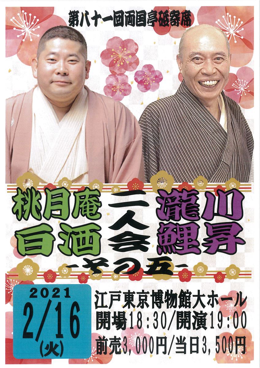 「鯉昇・白酒二人会」第81回 両国亭砥寄席 21/2/16(火) 江戸東京博物館 大ホール シェア ツイート 上演情報 ジャンル 落語/演芸 料金 前売-3,000円当日-3,500円 表示できるチケット情報はありません詳しくはこちら キャスト&スタッフ 出演 瀧川鯉昇 桃月庵白酒 [出演]瀧川鯉昇 / 桃月庵白酒 お問い合わせ ミュージック・テイト西新宿店 公式サイト シェア ツイート