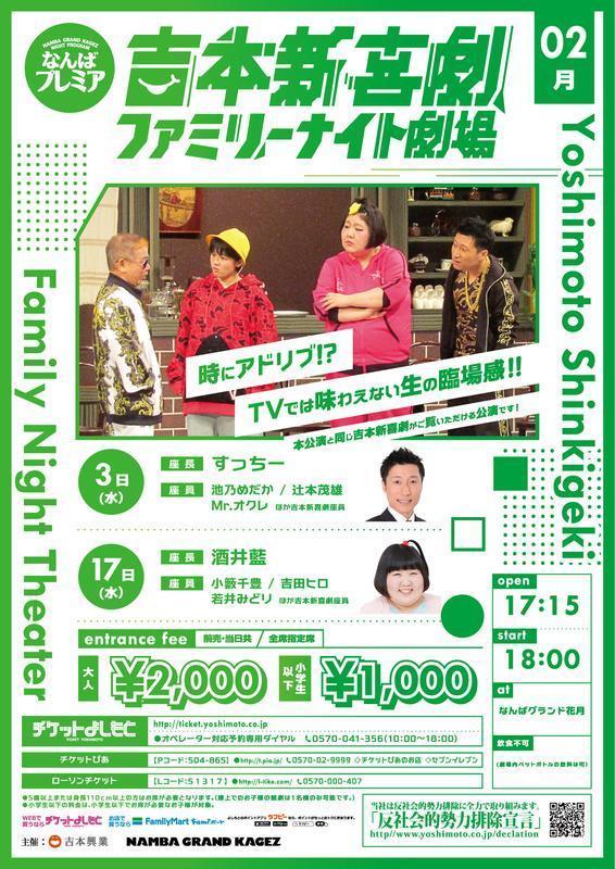 5歳以上または身長110cm以上の方はお席が必要となります。(膝上でのお子様の観劇は1名様のみ可能です。)16歳未満の方は保護者同伴に限り入場可。ビデオ・カメラ、または携帯電話等での録音・録画・撮影・配信禁止。出演者は変更になる場合がありますので予めご了承下さい。変更・払戻不可。車椅子の方はチケット購入前にチケットよしもとコールセンター[TEL]0570(041)356まで要問合せ。
