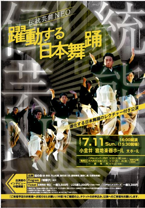 伝統芸能NEO~躍動する日本舞踊~ 21/7/11(日) 小金井 宮地楽器ホール 大ホール シェア ツイート 伝統を受け継ぎ進化する日本舞踊のレクチャー付き公演! 上演情報 ジャンル 歌舞伎 ※未就学児入場不可 料金 全席指定-3,500円 表示できるチケット情報はありません詳しくはこちら キャスト&スタッフ 出演 泉徳保 市山松扇 猿若清三郎 藤間章吾 藤間仁凰 花柳寿美藏 [出演]泉徳保 / 市山松扇 / 猿若清三郎 / 藤間章吾 / 藤間仁凰 / 花柳寿美藏 お問い合わせ 小金井 宮地楽器ホールチケットデスク シェア ツイート