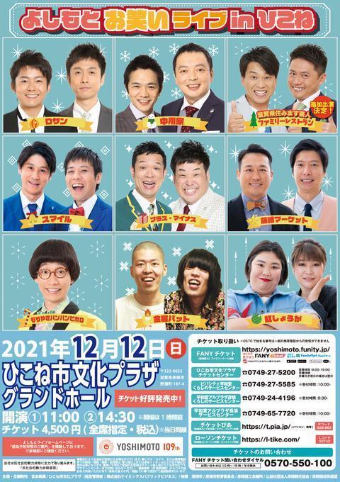 5歳以上または身長110cm以上の方はお席が必要。(膝上でのお子様の観劇は1名様のみ可能。)必ずマスク着用と、入場時に手指の消毒をお願いします。検温により入場をお断りさせて頂く場合がございます。録音・録画・撮影・配信・飲食禁止。出演者が変更になる場合がございます。変更・払戻不可。開演時間は多少前後する場合がございます。よしもとライブHPに「感染症予防対策のご案内」を掲載しております。来場前にご確認ください。車椅子席をご購入の方は[TEL]0749(27)5200まで要問合せ。※最寄駅(JR南彦根駅)からバスの送迎をご利用いただけます(有料片道210円/湖国バス)